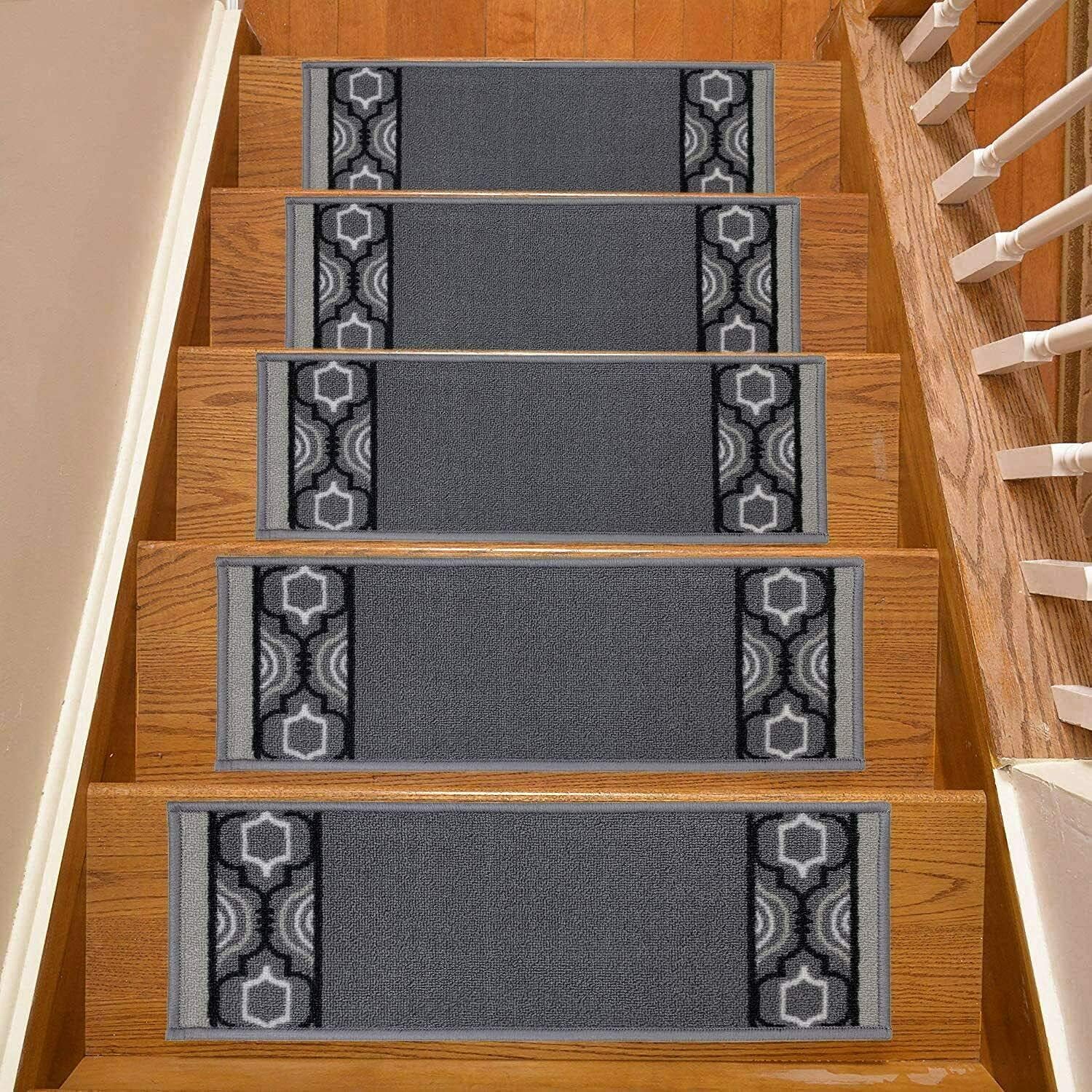 0 Response to "Stair Treads Skid Slip Resistant Backing Indoor Carpet Stair Treads Trellis Border Design 8 ½ inch x 26 ¼ inch (Set of 13, Grey Black)"